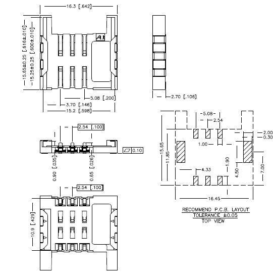 CONNETTORI X SCHEDE SIM 6 PIN NO ESPULS.