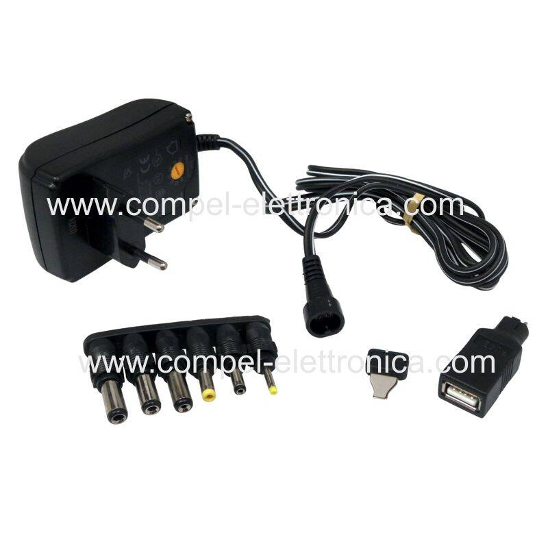 ALIMENTATORE SWITCH REGOLABILE 3/12V 2,25A 230VAC USB 6 CONNETTORI