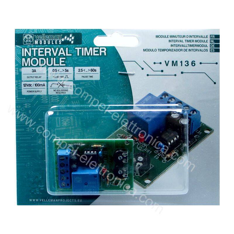 MODULO TIMER 2,5S....60S PER INTERMITTENZA VM136 (Montato)