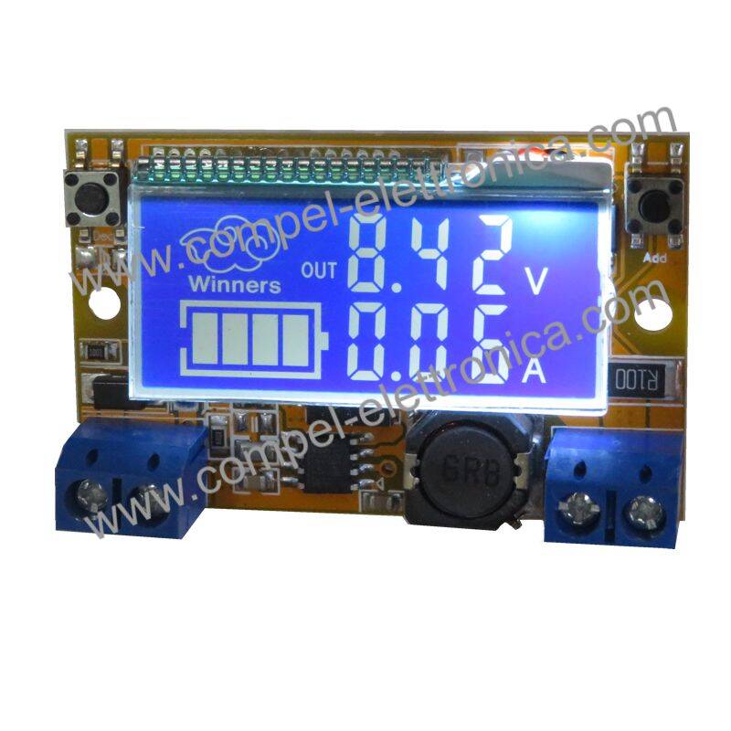 Il modulo dispone di un display a cristalli liquidi per la visualizzazione della tensione e la corrente erogata in uscita.
