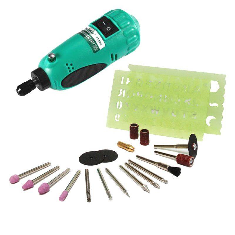 Descrizione: Mini fresa con 21 (19 2 stencils) accessori Proskit PT-5202F