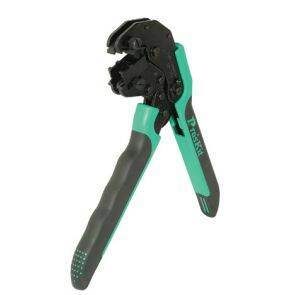 Descrizione: Pinza crimpatrice professionale a cricchetto con sostituzione rapida della testa (ganasce)
