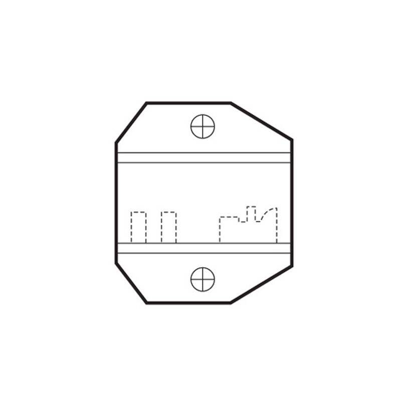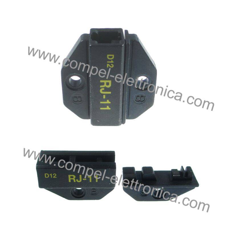 Descrizione: ganascia intercambiabile per crimpare spine telefoniche RJ11 modulari 6 poli / 6 e 4 contatti.