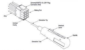Questo estrattore è stato disegnato per rimuovere i pin e le prese contatti dai connettori universali MATE-N-LOK,