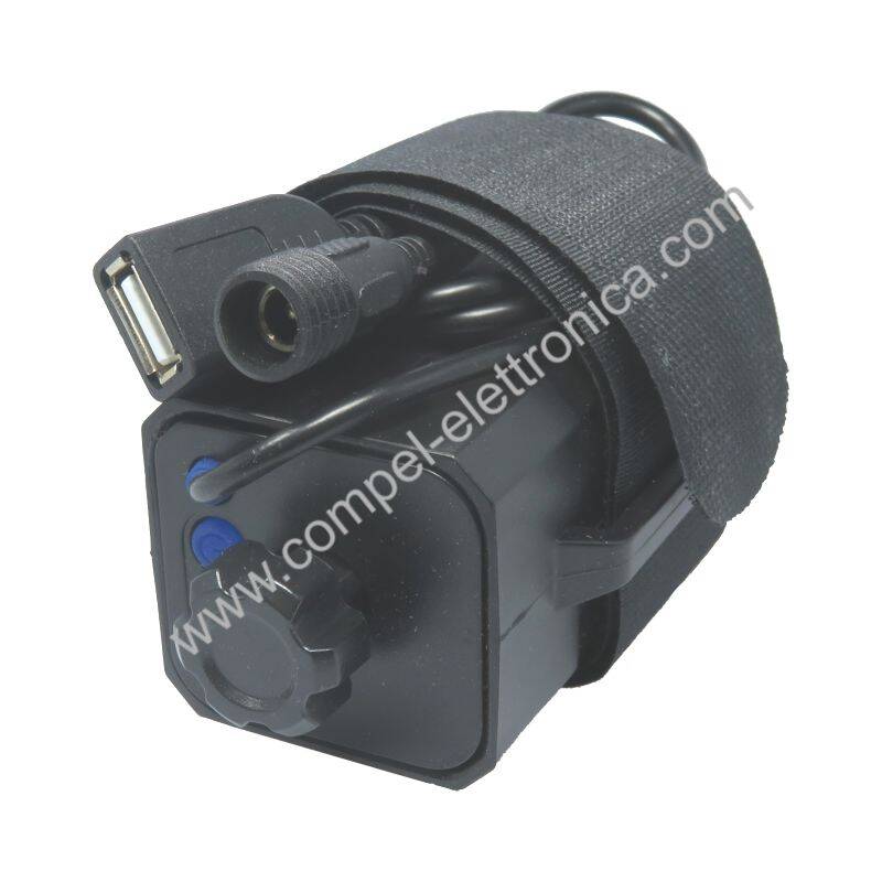BOX STAGNO PER 4 BATTERIE LITHIO 18650 LED SPIA TASTO ON/OFF PRESA USB