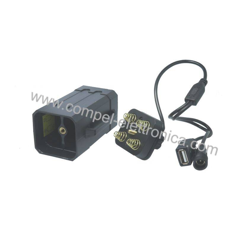 Contenitore per Batteria Box cavo lungo 60cm presa usb tipo a femmina e presa uscita tensione pin esterno 5,5mm interno 2,1mm