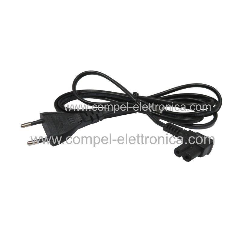 Descrizione: Cavo alimentazione presa a 8 con scanalatura 90° IEC-320-C7 adatto per alimentatori generici- alimentatori per computer -TV ecc..