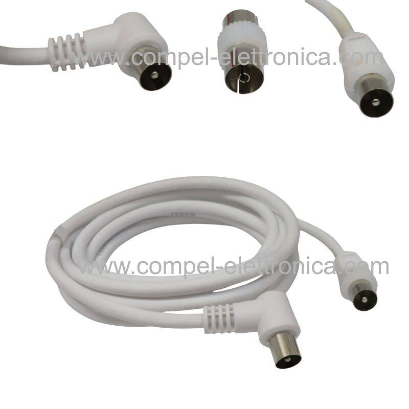 Descrizione: CAVI ANTENNA TV COAX 9,5 MASCHIO / MASCHIO 90° CON ADATTATORE Femmina / Femmina