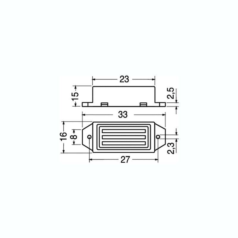 DIMENSIONI: lunghezza totale 33 mm altezza 15 mm larghezza 16 mm