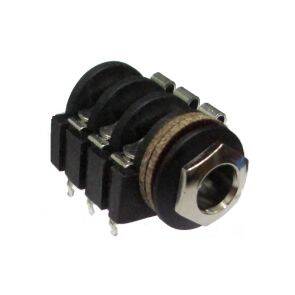 Descrizione: Presa pannello o circuito stampato C.S. Jack 6,3 stereo a 3 poli con contatti normalmente chiusi.