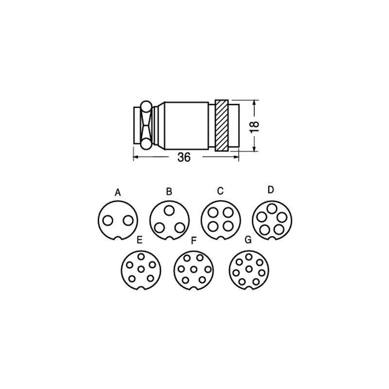 Dimensioni: diam. 18 mm profontità 36 mm SERIE GX 16 - GX16