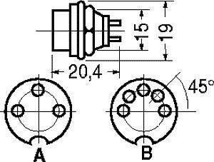 Dimensioni: diam. presa 16 mm profondità 20,4 mm inclusi i pin