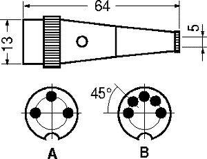 Dimensioni: diam. spina 13,3 mm profondità 64 mm