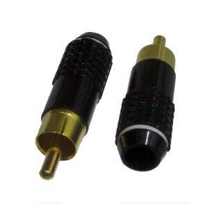 Descrizione: Spina coassiale RCA anodizzata polarizzata NERA anello bianco PROFESSIONALE
