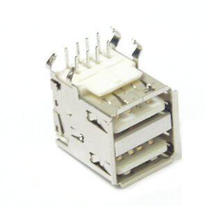 Descrizione: Presa USB doppia tipo A angolo 90° a circuito stampato completamente schermata