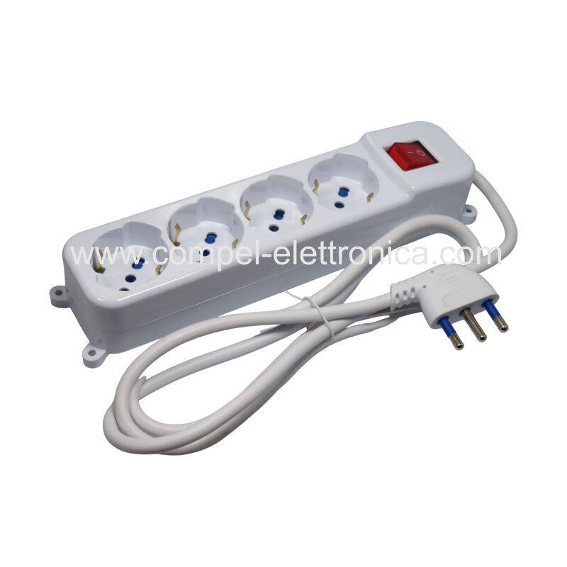 Descrizione: Prese multiple a 4 prese italiane bipasso 10/16A. Più Schuko con massa laterale.