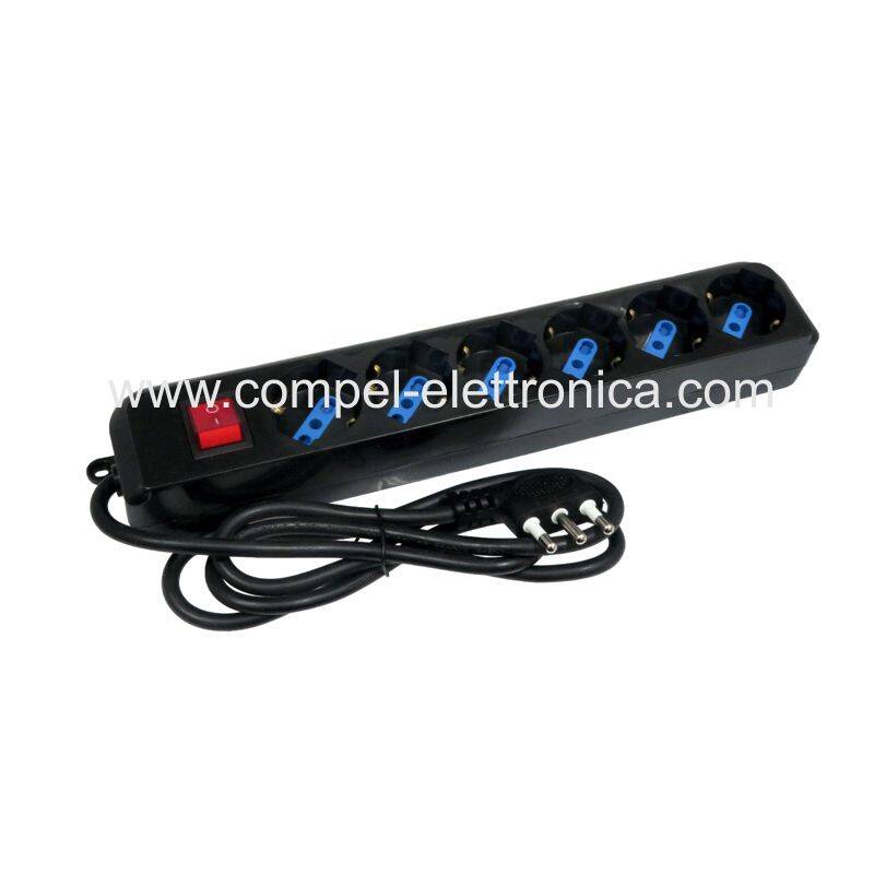 Descrizione: Prese multiple a 6 prese italiane bipasso 10/16A. Più Schuko con massa laterale.
