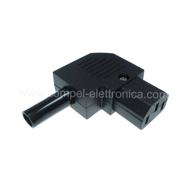 Descrizione: Presa volante alimentazione tripolare C13 ad angolo 90° basso profilo a norme CEE