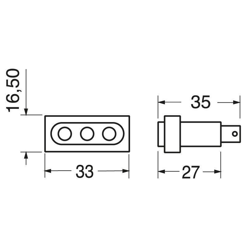 Dimensioni: lunghezza 33 mm altezza 17 mm