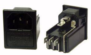 SPINA PANNELLO TRIPOLARE 10A 250Vac VDE C14 AUTOBLOCC. 2 PORTAFUSIBILE