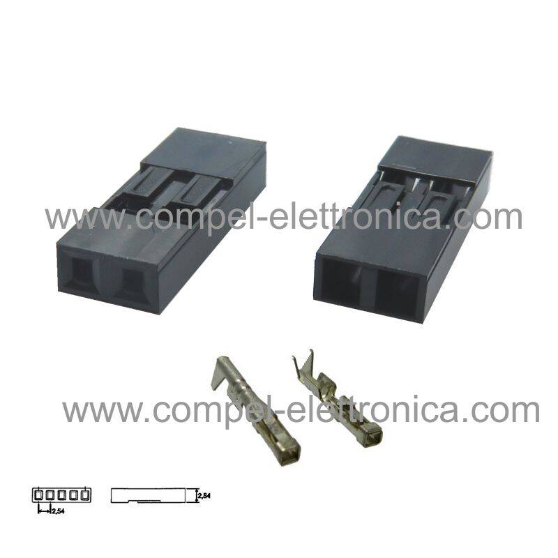 CONNETTORE DUPON FEMMINA 2 POLI PASSO 2,54 - CONTATTI INCLUSI