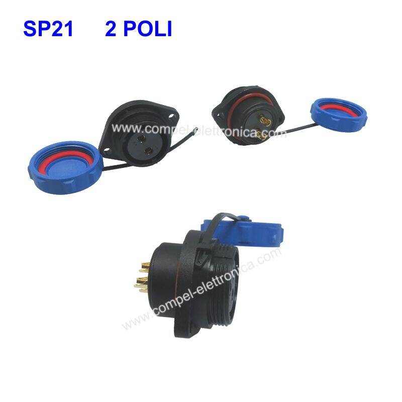 PRESA SP21 FEMMINA PANNELLO 2 POLI IP68 FILETTATURA ESTERNA CON FLANGIA
