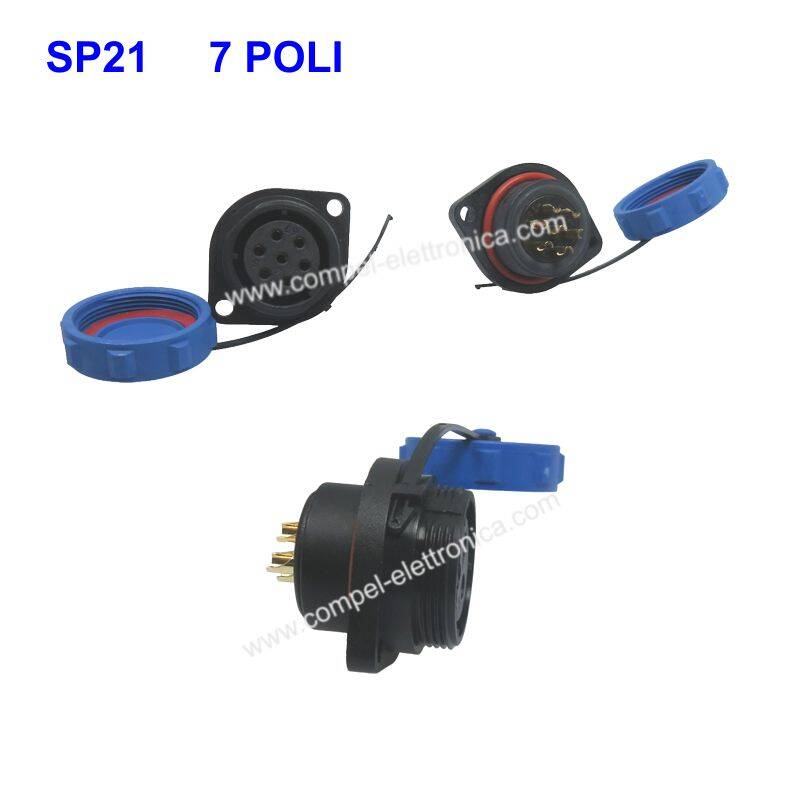 PRESA SP21 FEMMINA PANNELLO 7 POLI IP68 FILETTATURA ESTERNA CON FLANGIA