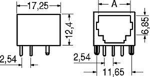 Descrizione: Presa telefonica modulare a basso profilo. Esecuzione ad angolo per circuito stampato.