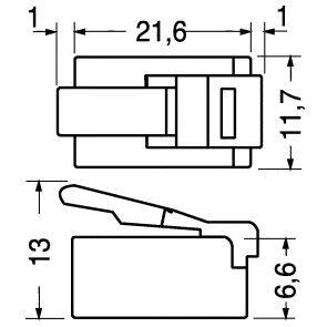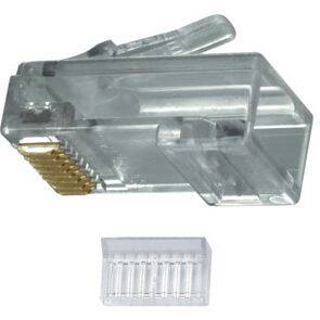 Descrizione: Spine telefoniche modulari.Spina RJ45 per cavo rigido UTP e flessibile CAT6. Spine non schermate con guidacavo