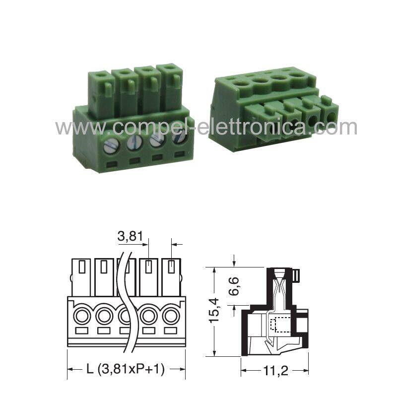 Descrizione: Morsetto europlug femmina passo 3,81mm 4 vie connettore scollegabile