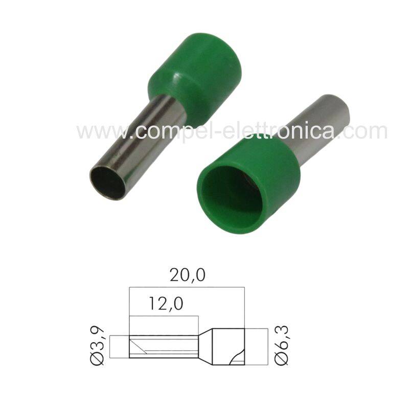 PUNTALINO A BUSSOLA LUNG.12MM/D3,9MM PER CAVO 6MM PRE-ISOLATO VERDE