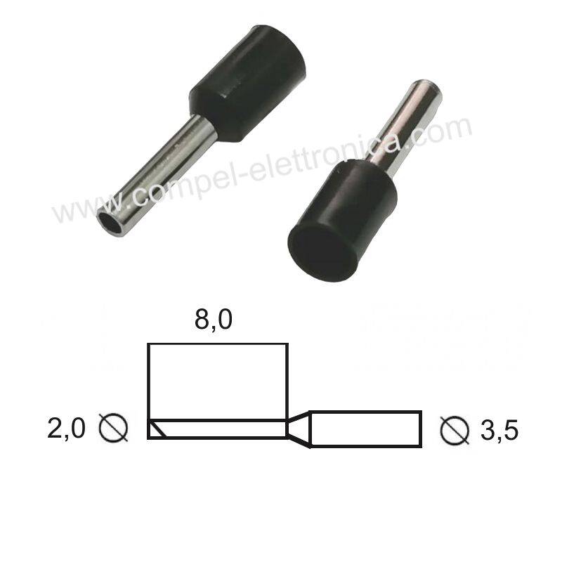 PUNTALINO A BUSSOLA LUNG.8MM/D2MM PER CAVO 1,5MM PRE-ISOLATO NERO