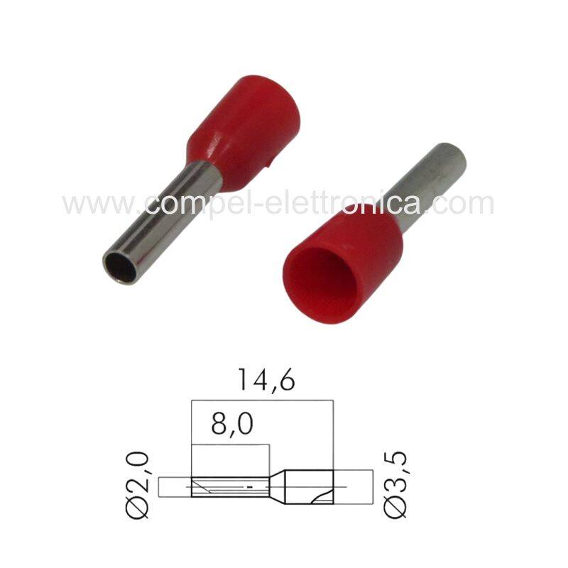 PUNTALINO A BUSSOLA LUNG.8MM/D2MM PER CAVO 1,5MM PRE-ISOLATO ROSSO
