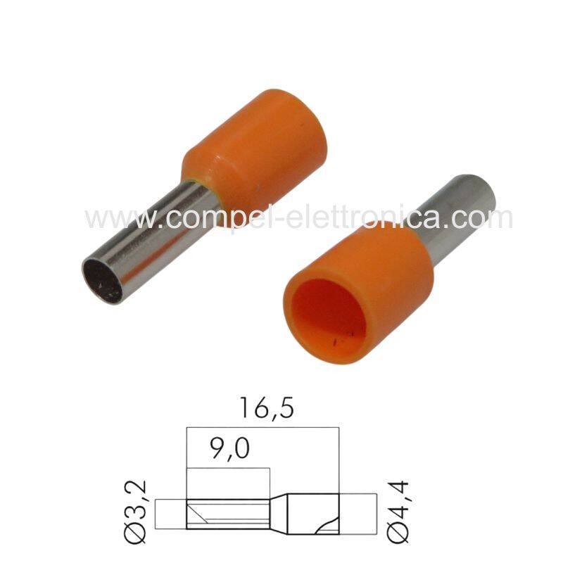 PUNTALINO A BUSSOLA LUNG.9MM/D3,2MM PER CAVO 4MM PRE-ISOLATO ARANCIO