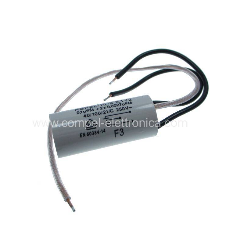 FILTRO ANTIDISTURBO 0,1UF 2X0,0027uf 250VAC 16x35mm 3 FILI