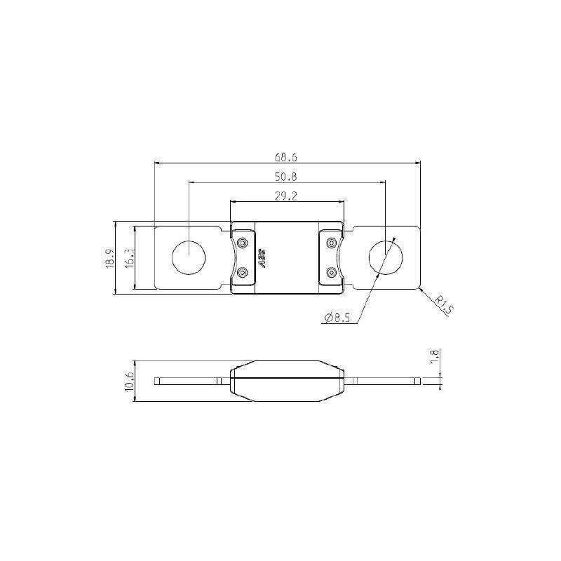 FUSIBILE INDUSTRIALE A LAMA 32VDC 175A 16,3MM X 68,6MM FORO 8,5MM