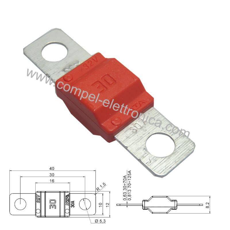FUSIBILE INDUSTRIALE A LAMA 32VDC 30A 10MM X 40MM FORO 5,3MM