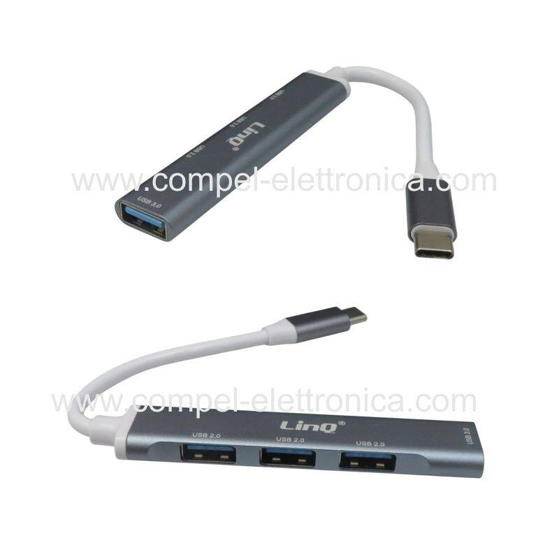 Descrizione: HUB TYPE-C CON 3X porte USB 2.0 - 1X porta USB 3.0 SILVER-GRIGIO