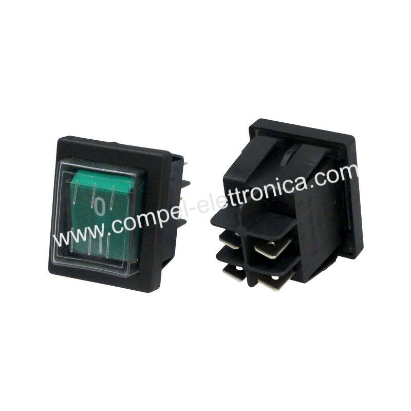 Interruttore bipolar luminoso VERDE a bilanciere con protezione in gomma