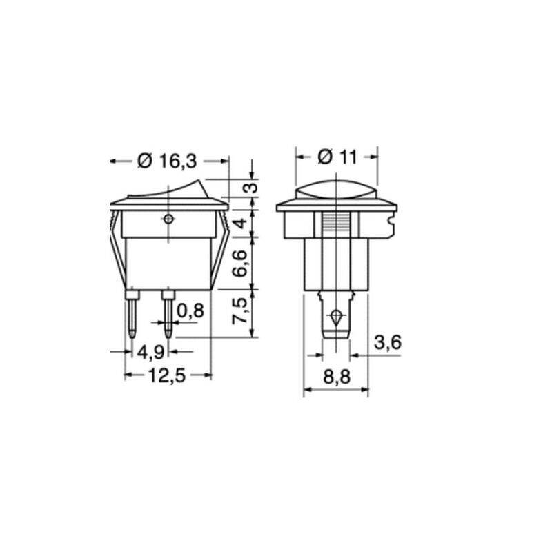 INTERRUTTORE MINI A BILANCIERE TONDO DA PANNELLO 250VAC 3A NERO D16MM