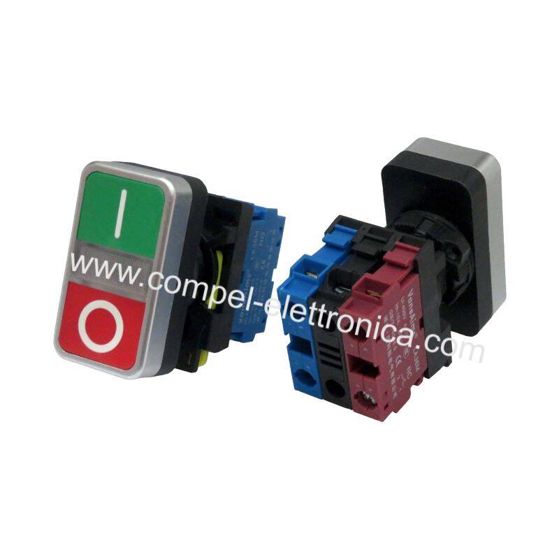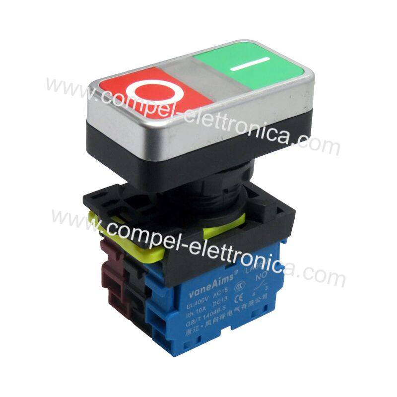 PULSANTE DOPPIO A PANNELLO ON OFF CON LED 10A 240V . 400Vac 1NC-1NO Ø 22