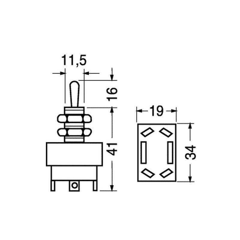 Dimensioni: spessore 19mm larghezza 34mm altezza 41mm 16mm leva
