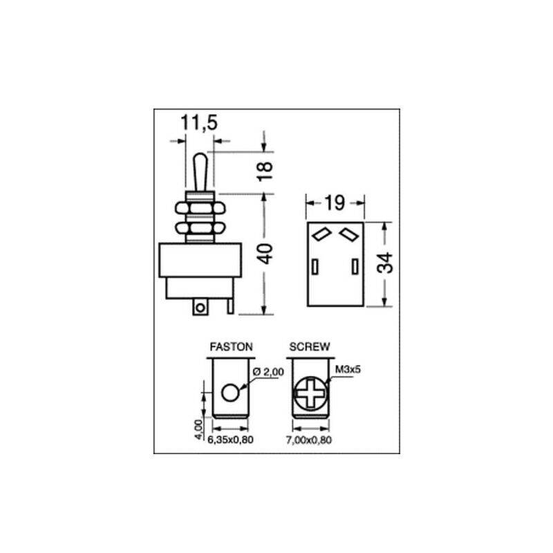 INTERRUTTORE BIPOLARE A LEVA 2 POSIZIONI 10A 250VAC ON-OFF DA PANNELLO