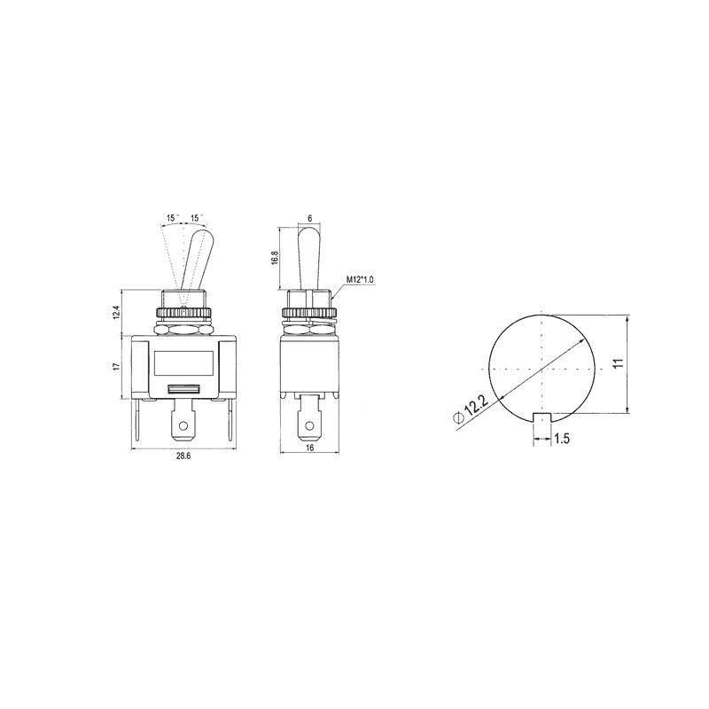 Dimensioni cassa: 28,6x16x17mm - Altezza della leva 16,8mm