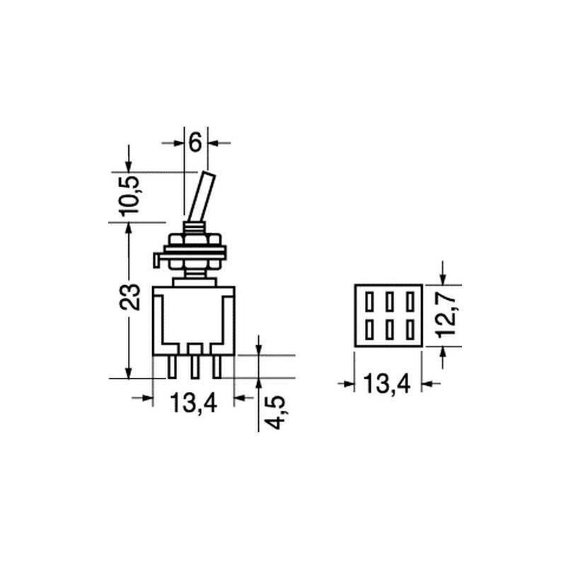Descrizione: Deviatore miniatura 2 scambi Posizioni 3, posizioni instabili (ON)-OFF-(ON) posizione zero centrale.stabile