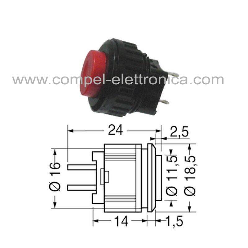 Descrizione: Interruttore TONDO a pulsante, ROSSO
