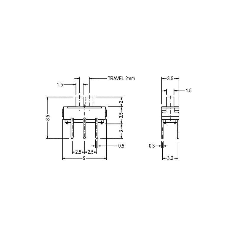 DEVIATORE A SLITTA MINI 2 POSIZIONI 6 PIN, 9x3,5x3,5mm