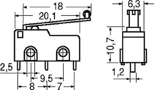 MICRODEVIATORE SWITCH 6A 250VAC SPDT C/LEVA ROTELLA A CIRCUITO STAMPATO