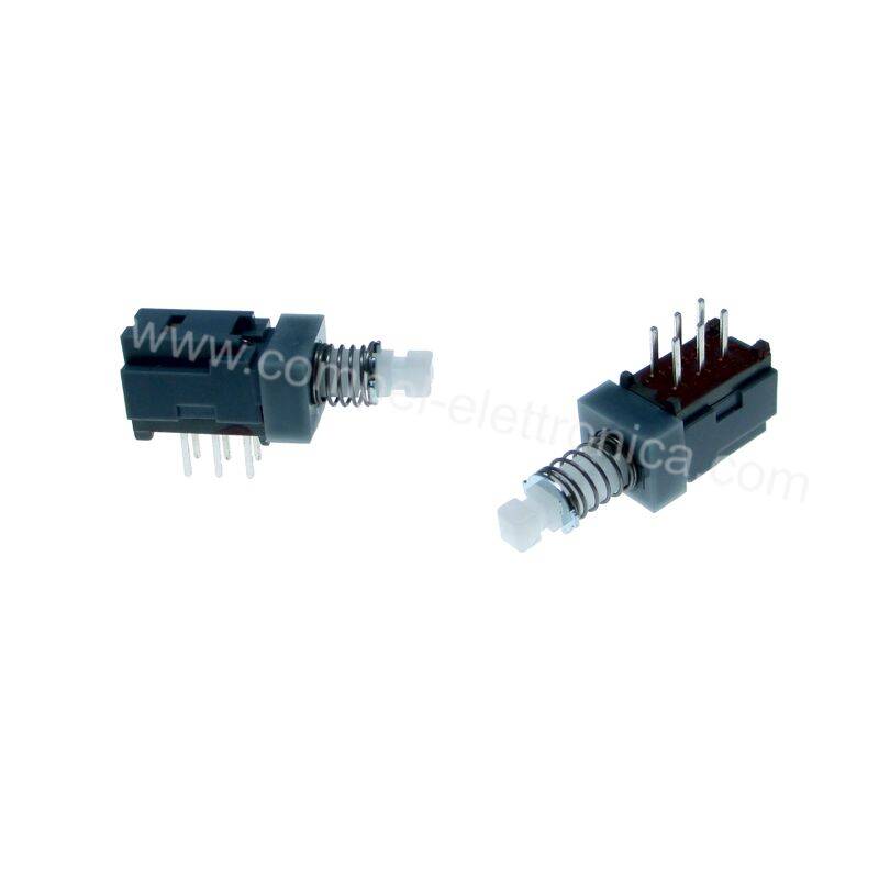 Descrizione: Microdeviatore bipolare a pulsante due scambi 90°C a circuito stampato