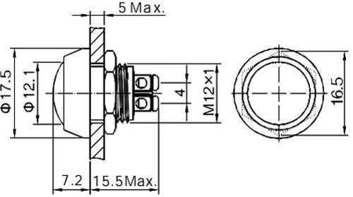 PULSANTE ANTIVANDALICO 36Vdc 2A IP65 N.A. FORO D.12 ROSSO
